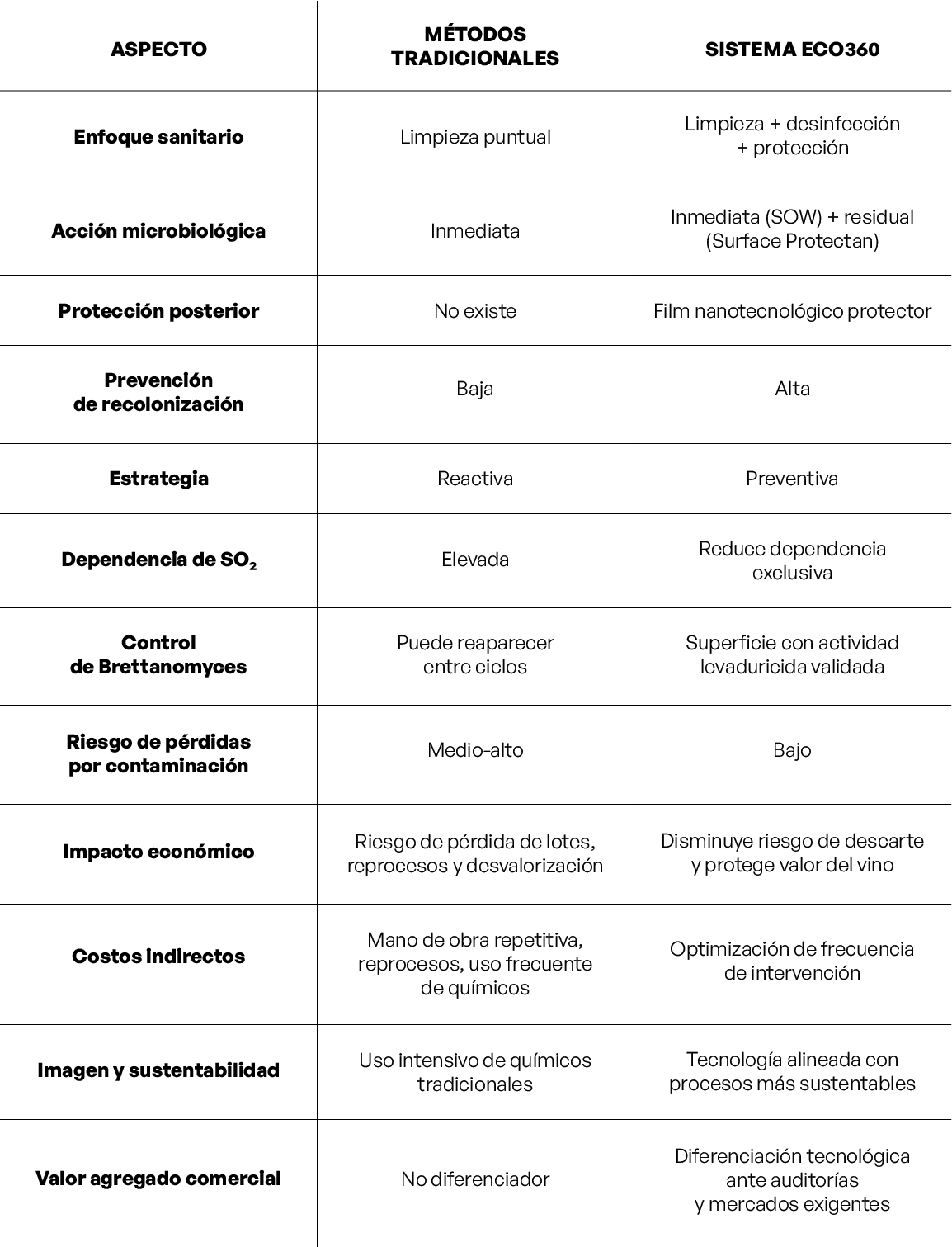 Esta combinación permite no solo eliminar Brettanomyces, sino prevenir su recolonización.